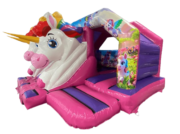Transform any garden or event into a magical fairy-tale playground with our 3D Unicorn Bounce & Slide Combi! This 15x15 ft unicorn-themed inflatable features a frontal slide and striking 3D unicorn turrets. With bright, engaging graphics and a child-safe design, it’s a guaranteed hit for parties, rentals, and special events. Quick to set up, easy to maintain, and sure to bring big smiles.