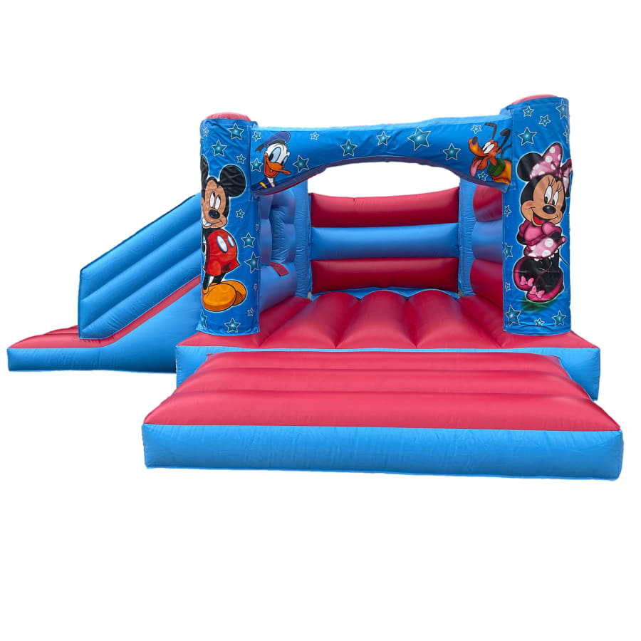 Make your little one's party a magical experience with our Mickey & Minnie Mouse low-height bouncy castle featuring an exciting slide. 🎉