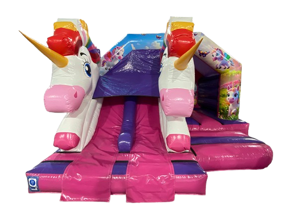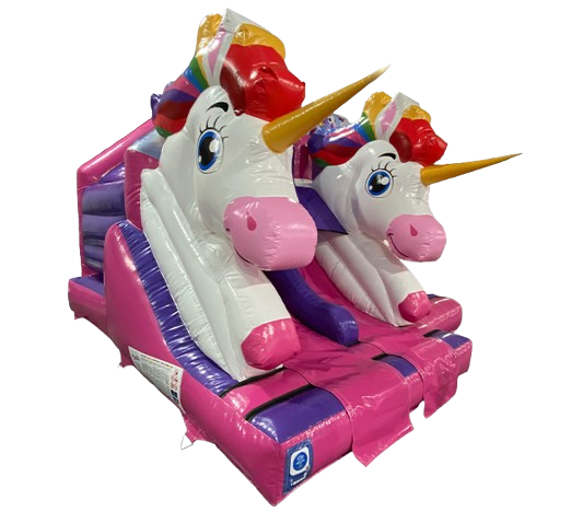 Transform any garden or event into a magical fairy-tale playground with our 3D Unicorn Bounce & Slide Combi! This 15x15 ft unicorn-themed inflatable features a frontal slide and striking 3D unicorn turrets. With bright, engaging graphics and a child-safe design, it’s a guaranteed hit for parties, rentals, and special events. Quick to set up, easy to maintain, and sure to bring big smiles.
