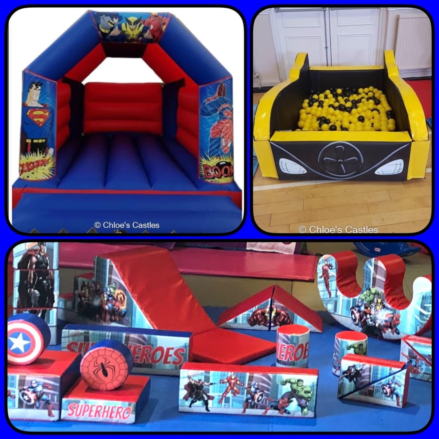 19 various superhero themed soft play shapes